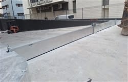 An Open Groove configuration was installed, featuring Water Protection Height of 250mm but with Columns and Beams of 300mm. To achieve a tight seal by pressing the Beams well against Lateral Guidances and onto the ground also, special pressure tools that are purpose-built for such unique scenarios were used.